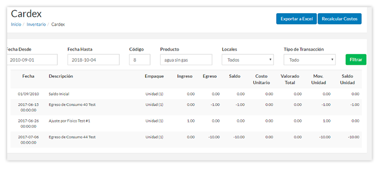 Maneja tu inventario y costo con recetas, eventos de costo, sistema de inventario físico, ajustes, transferencias, órdenes de compras, producción, cardex y todo en múltiples bodegas.