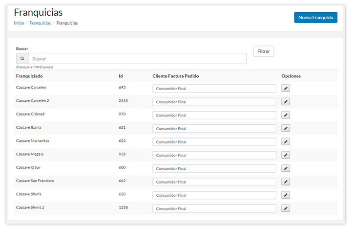 Adicional a esto, instantáneamente puedes observar los valores de facturación de todos tus locales franquiciados.