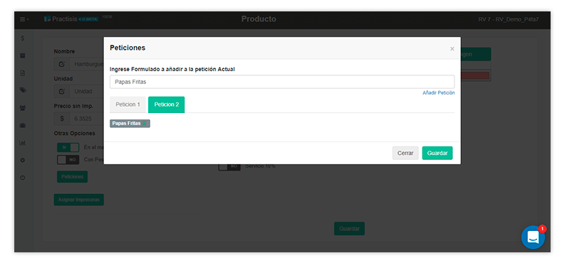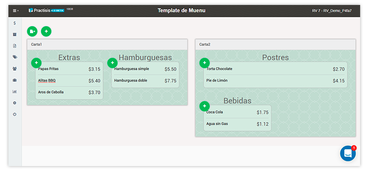 El menú de pedidos se adapta a pantallas táctiles y te permite configurar múltiples peticiones, combos o submenús. Cada vez que marcas un botón en el menú, Practisis te pide que elijas opciones en forma obligatoria u opcional. Así, con el proceso de peticiones controlas el flujo de pedidos y facilitas el trabajo en caja. Con múltiples opciones para configurar tu menú, Practisis se adapta a la forma de trabajar de tus cajeros.