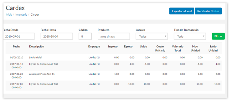 Maneja tu inventario y costo con recetas, eventos de costo, sistema de inventario físico, ajustes, transferencias, órdenes de compras, producción, cardex y todo en múltiples bodegas.