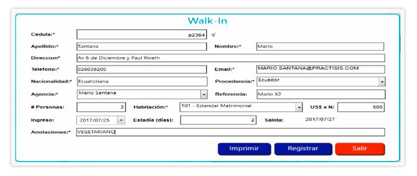 Cuando tienes clientes que llegan al hotel sin tener reserva, Practisis cuenta con un módulo de checkin express que te permite hacer el ingreso rápidamente. Una vez realizado el checkin, el proceso de manejo de la habitación es igual a si el cliente ingresó con una reserva.