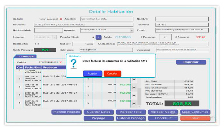 Con cada consumo que los clientes realicen en el hotel se pueden hacer cargos a las habitaciones. Estos consumos pueden ser generados en restaurantes, bares o shops directamente conectados al hotel. Los cargos a las habitaciones pueden ser enviados al folio principal o a los folios secundarios de cada habitación. Con la información de cada habitación, el checkout se hace instantáneamente.