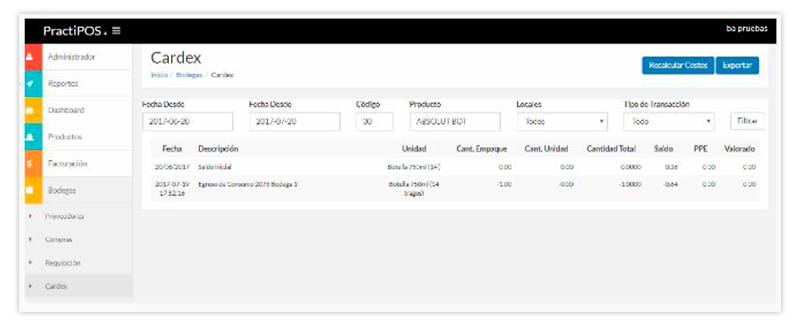 Maneja tu inventario y costo con recetas, eventos de costo, sistema de inventario físico, ajustes, transferencias, órdenes de compras, producción, cardex y todo en múltiples bodegas.